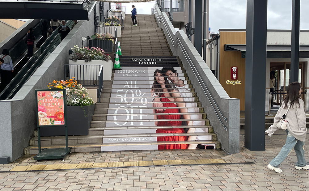HILL SIDEの各ストリートをつなぐ階段に、インパクトのある広告を掲出できます。HILL SIDE階段