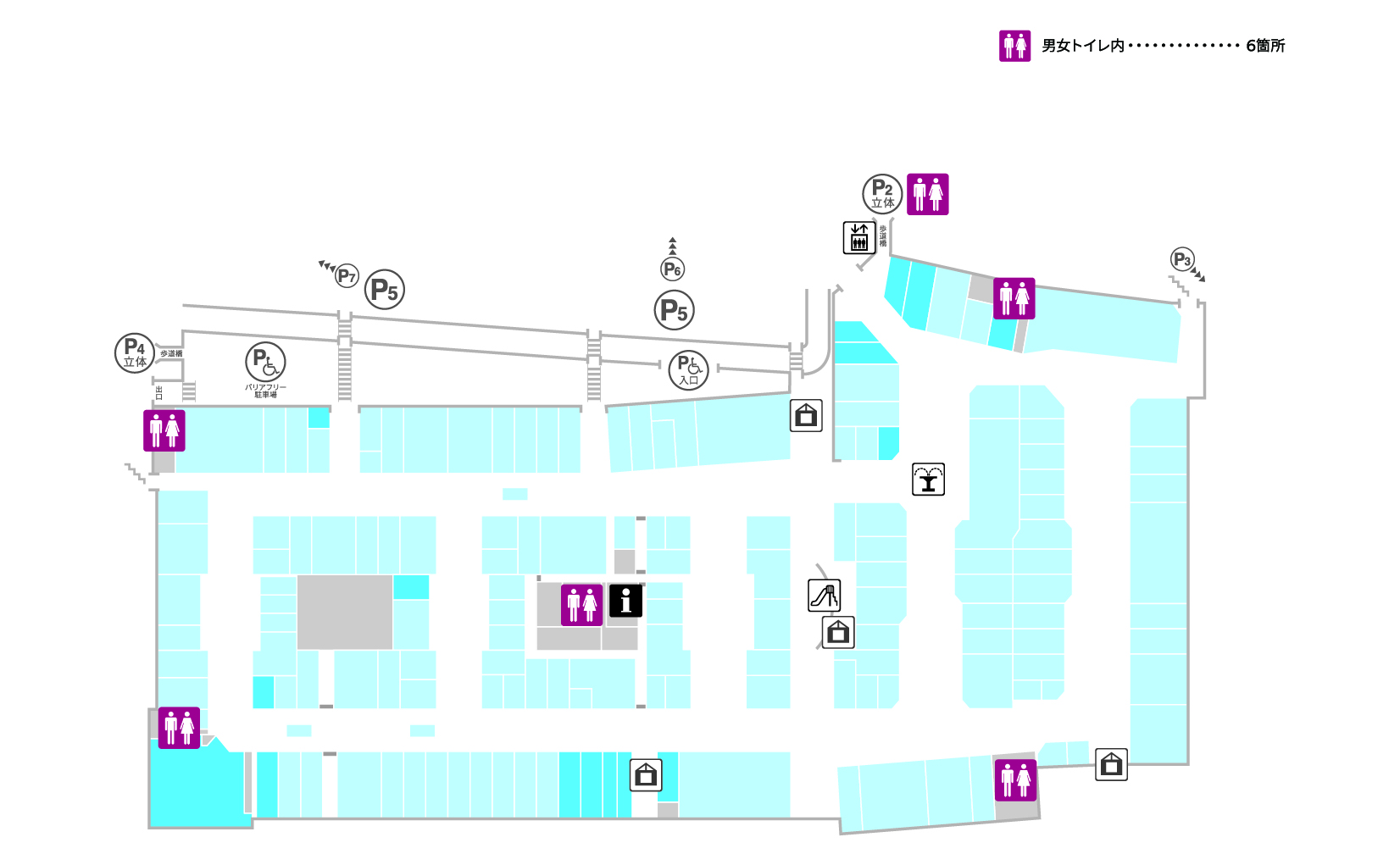 | 数量 | 男女トイレ 各6箇所・計12ルーム |