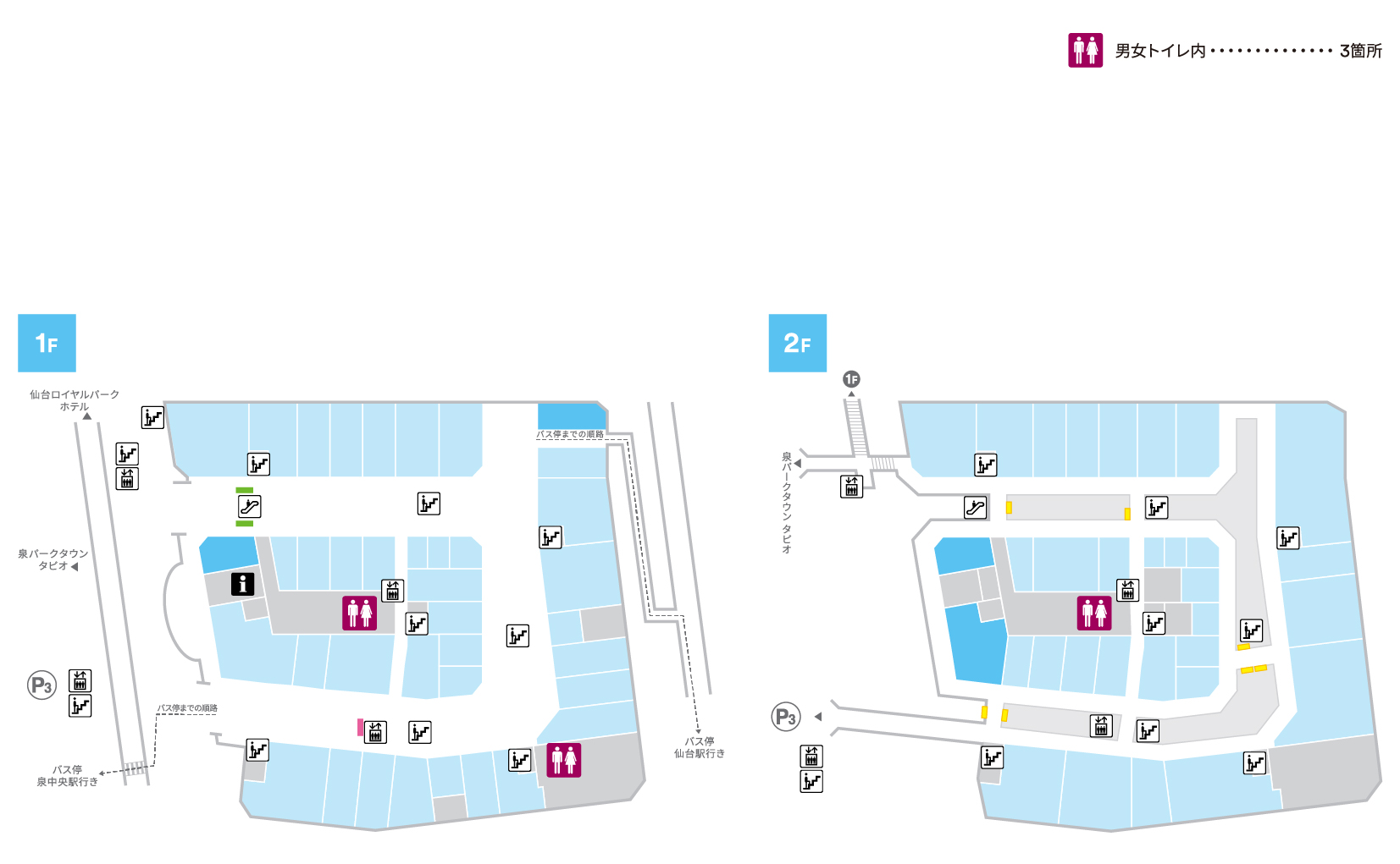 | 数量 | 男女トイレ 各3箇所・計6ルーム |