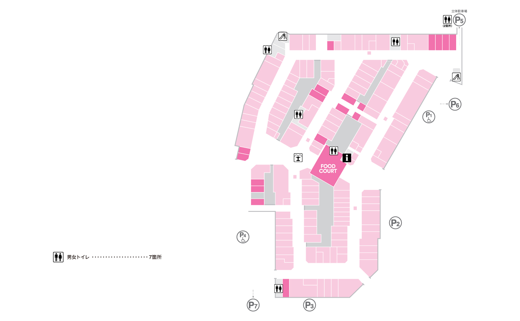 | 数量 | 男女トイレ 各7箇所・計13ルーム(うち2箇所は立体駐車場内) |