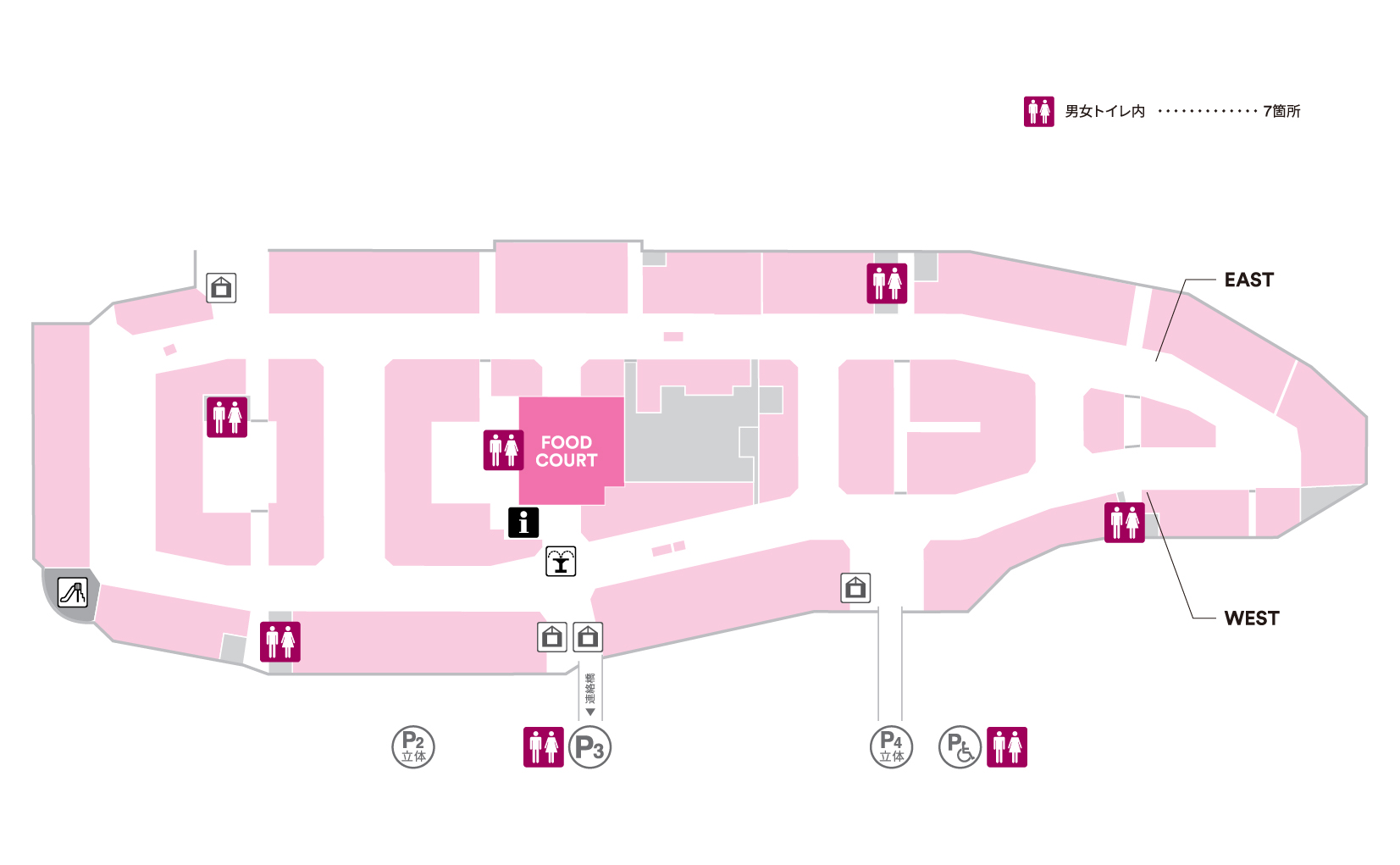 | 数量 | 男女トイレ 各7箇所・計14ルーム (うち2箇所は立体駐車場内) |