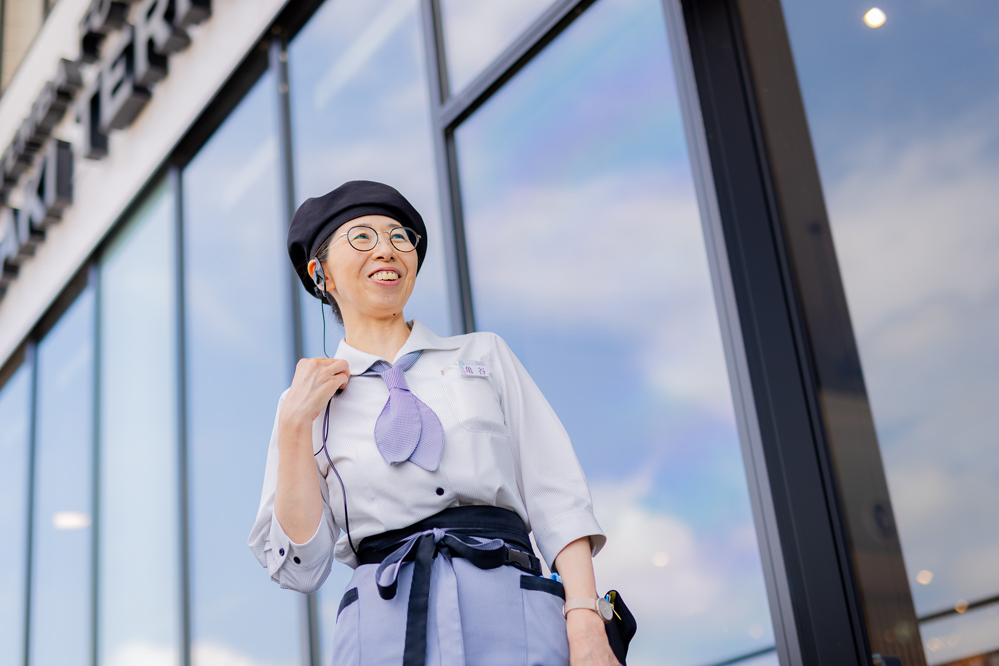 「毎日、ハァッ!と気合いを入れてホールに入っていきます。最初お客さまにお声がけをするのは、とても勇気が必要でした。迷っているうちにタイミングを逃してしまうこともありました。そこで、“今日はコレを頑張る”と、仕事前に小さな目標を決めるようにしたんです。たとえば“今日は必ずキッズチェアのお声がけをする”だったり“今日は絶対に疲れた顔を見せない”などです。1日1つの目標をクリアし続けることで、毎日がより充実したものになっていきました」