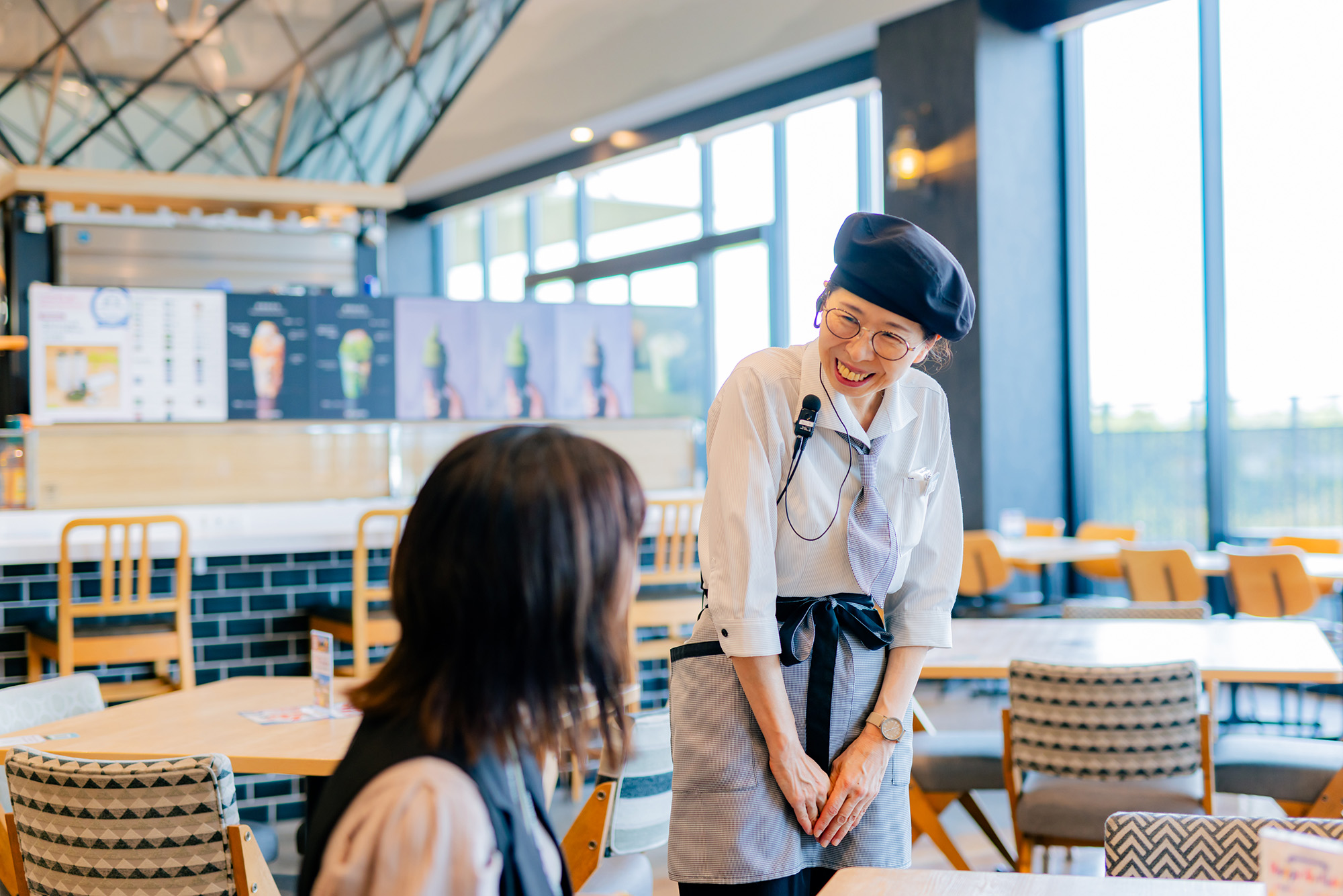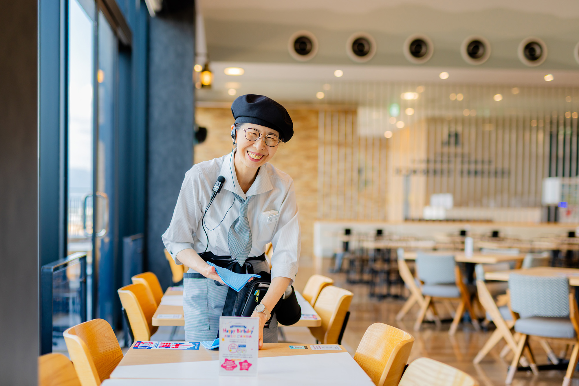「そんな中で会社の教育係の方に言われたのが、『全部やろうとしなくていい』という言葉でした。すべてを完璧にしようとすると、テーブルや椅子の清掃ばかりに気を取られて、お客さまを見られなくなってしまうからです。そこで、“大切なのは目の前のお客さまにとっての100点を目指すこと”と、考え方を切り替えました。たとえば今は、エアコンの効きがよい席や店舗に近い席など、お客さまが快適に過ごしやすい席を優先的に整えるなど、メリハリをつけるようにしています。そうした“優先順位の付け方”を覚えてからは、余裕を持ってお客さまに向き合えるようになりました」