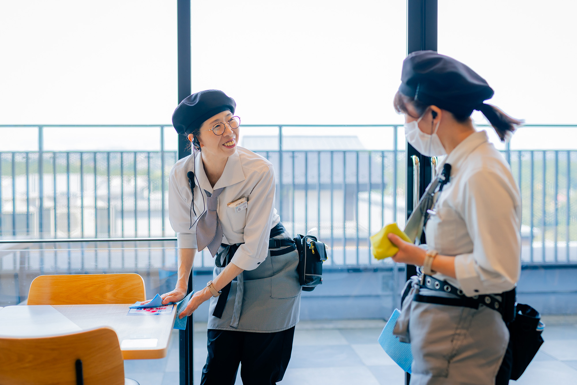 「最初の教育の際に、テーブルと椅子を拭いて清掃だけしていればよいという、いわゆる“お掃除おばさん”的な仕事ではないですよね?と聞いたら『その通りです。そのつもりで来られたら困ります』とハッキリお答えいただき、求められるレベルの高さを強く感じました」