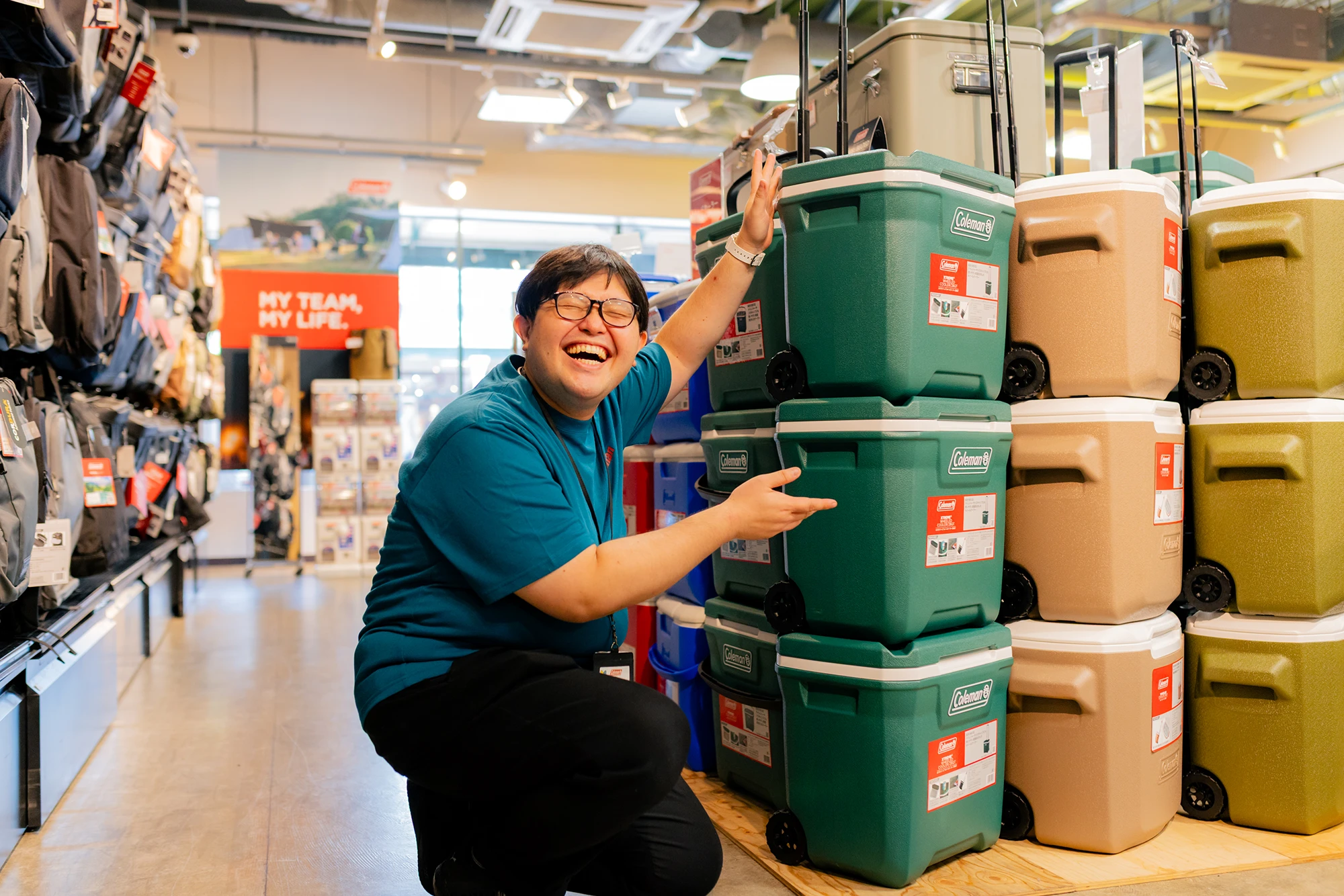 「今は“出会いの大切さ”を身に染みて感じています。パートナーに出会って販売員の道に進み、コールマンと出会ってロープレの世界に足を踏み入れ、出会った仲間たちと切磋琢磨する中で力をつけて大会に挑むことができました。これからは、まだ見ぬお客さまに出会って、コールマンの魅力やお買い物の楽しさ、満足感を提供できる、そんなスタッフになりたいと思うようになりました」