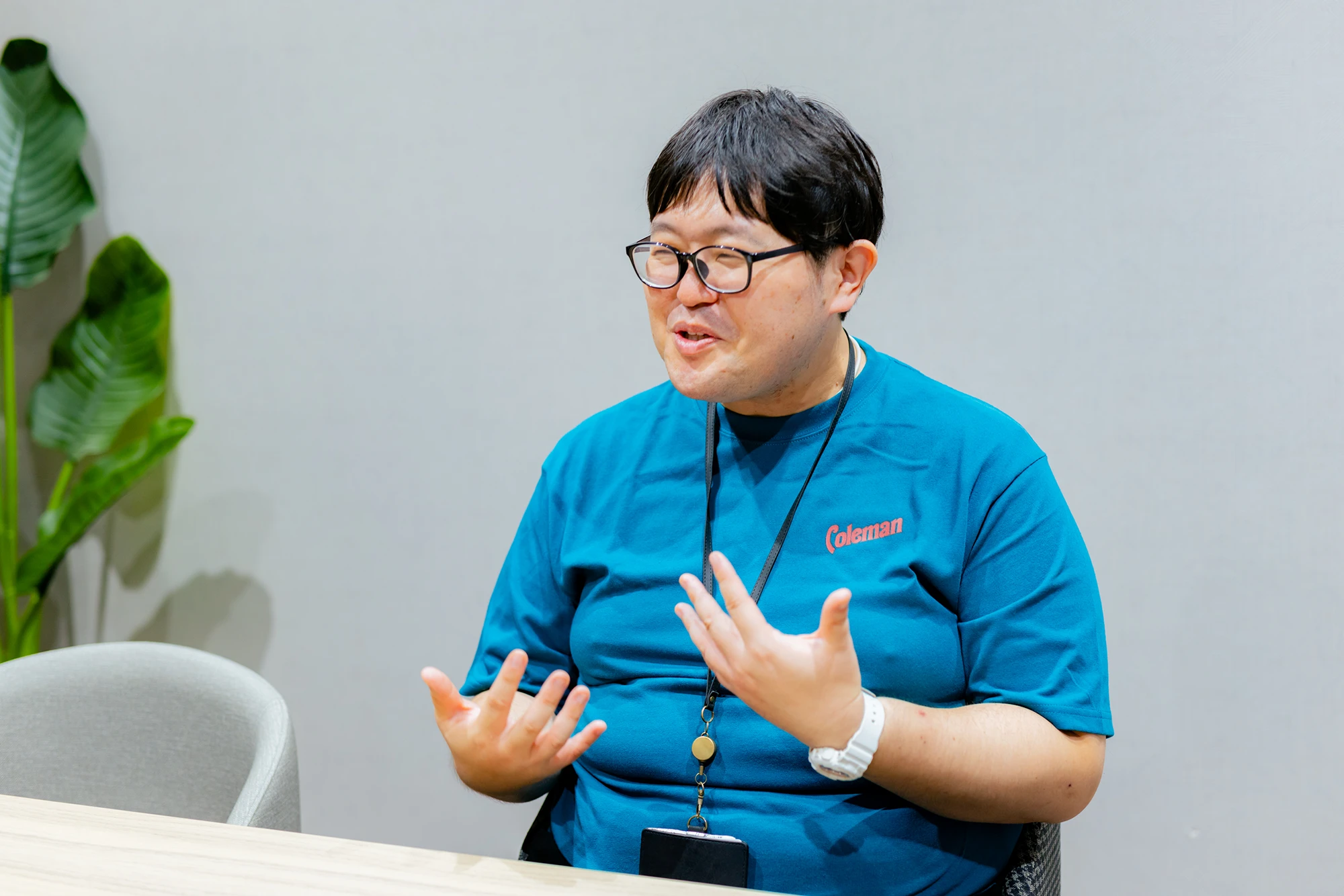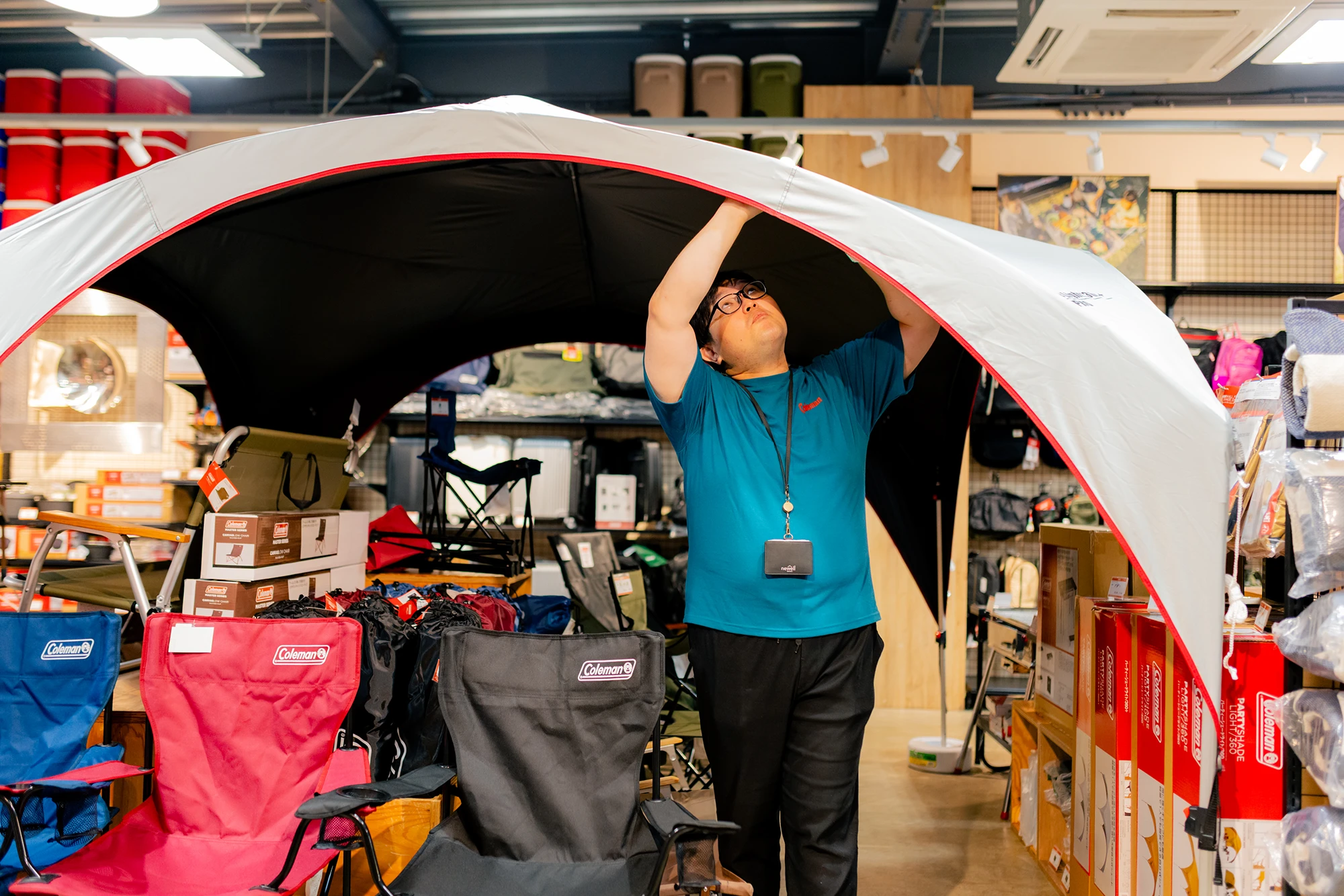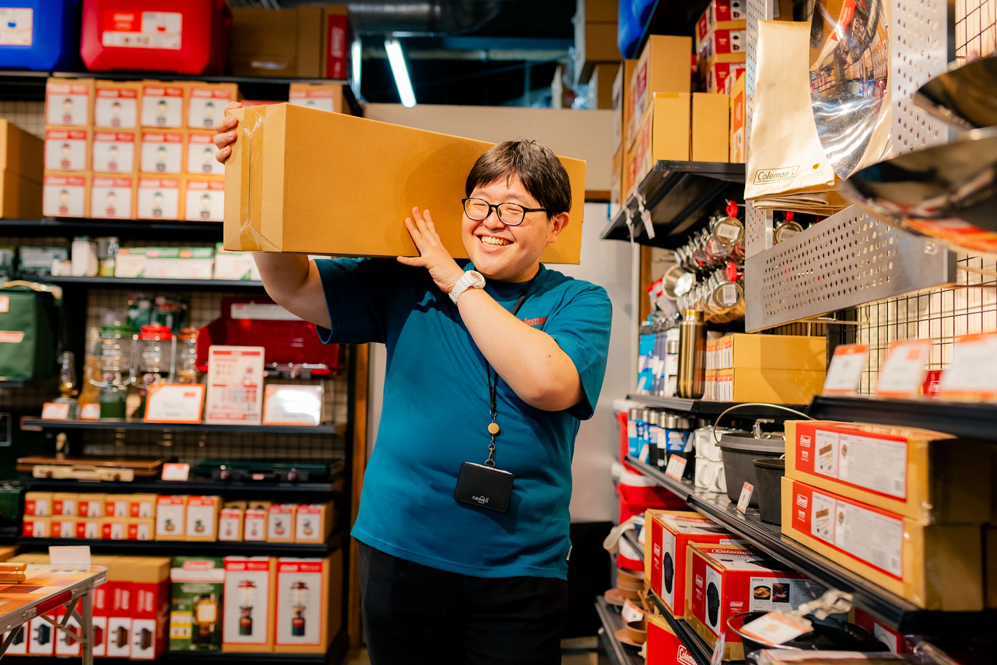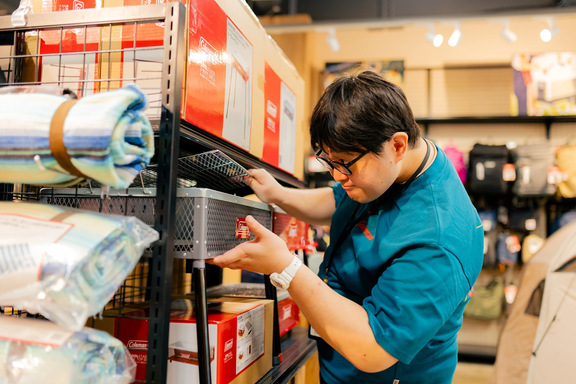どこか“夢の国”のキャラクターを彷彿とさせる、見る人を包み込むような優しい笑顔。吉岡将矢(よしおか しょうや)さんは、テントやランタンをはじめとしたアウトドア用品全般を扱う人気ブランド「コールマン」で働く店舗スタッフです。