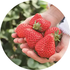 江間いちご狩り組合には静岡生まれの大粒いちご「章姫」とその苺から品種改良された「紅ほっぺ」の2種類がございます。
