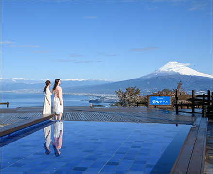 富士を望むオープンテラスで、