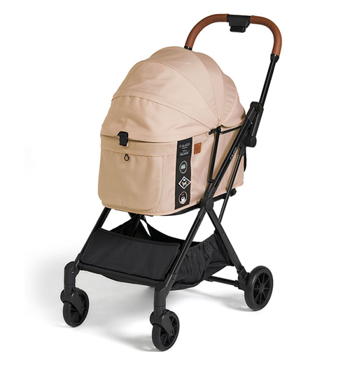 プラザハンドルのダブルロックを解除すると、1秒で自動的に収納が可能な「FikaGO FREE TO GO」ペットカートです。