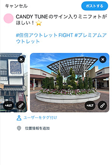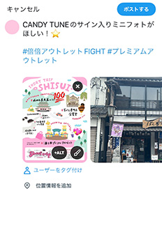 オリジナルデジタルMAPを加工&撮影した写真をハッシュタグ「#倍倍アウトレットFIGHT」「#プレミアムアウトレット」+欲しい賞品と共にXで投稿!